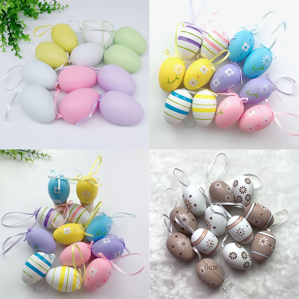 12PC/Set Easter DIY Simulation Eggs Kindergarten Painting Toys Egg Hanging Ornaments 8 Styles Children's Party Decor
