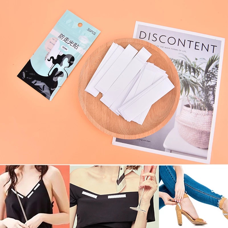 36Pcs/Pack Anti-glare Invisible Seamless Transparent Lingerie Fixed Stickers /Waterproof Double Sided Self-adhesive Body Tape / Clear Non-slip Fashion Tape For Dress,Shirt,Neckline
