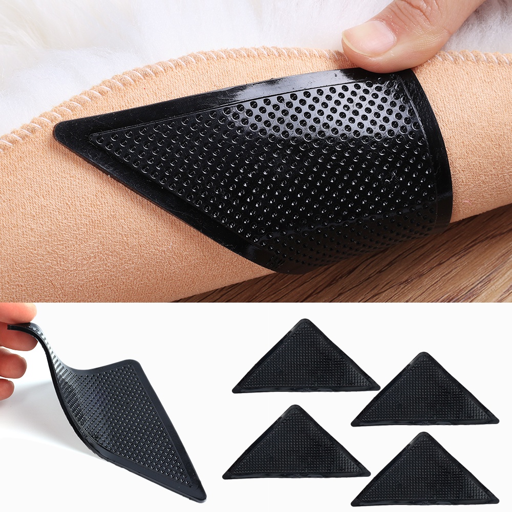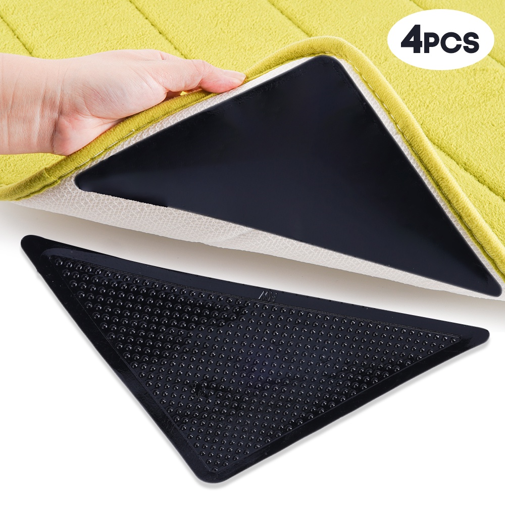 4Pcs/set Anti Skid Reusable Carpet Stopper Tape / Washable Anti-slip Carpet Corners Sticker / Durable Multifunctional Anti-slip Carpet Pad / Invisible Carpet Fixing Patch