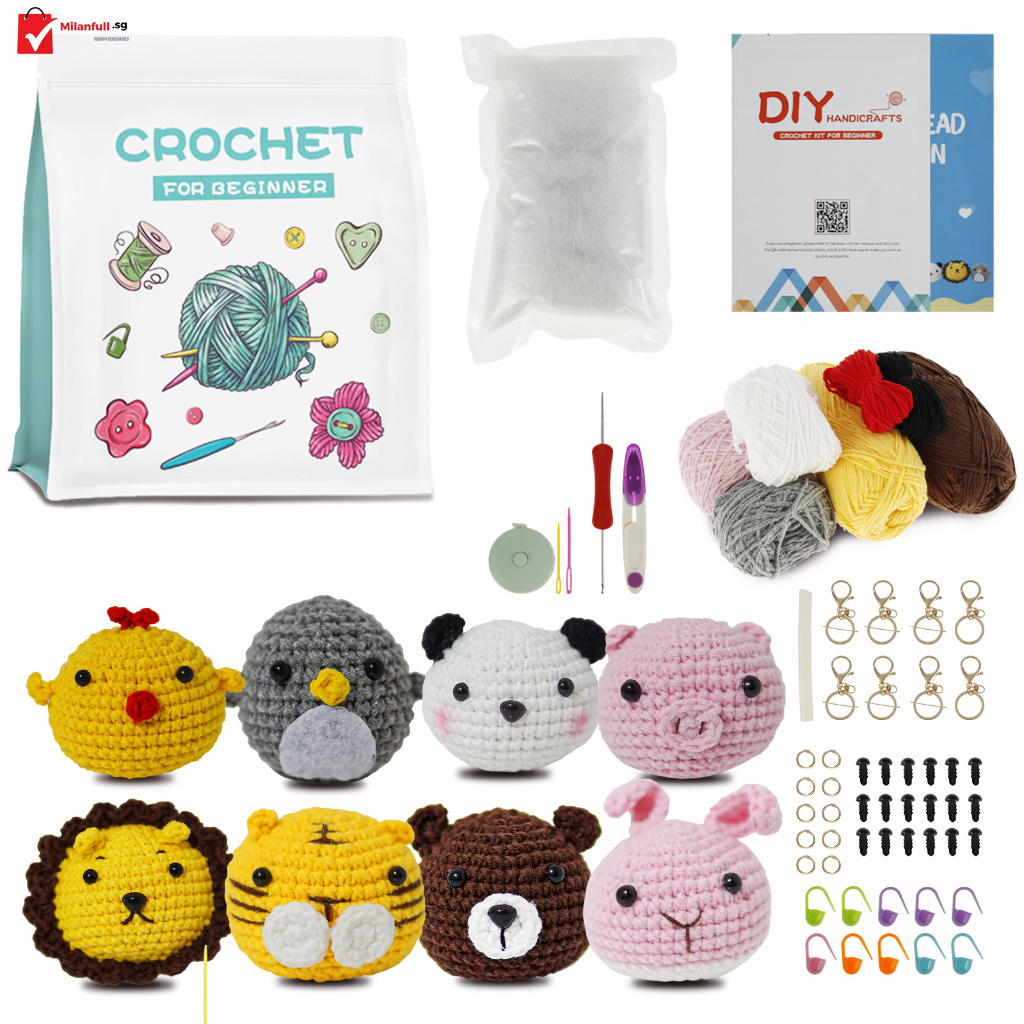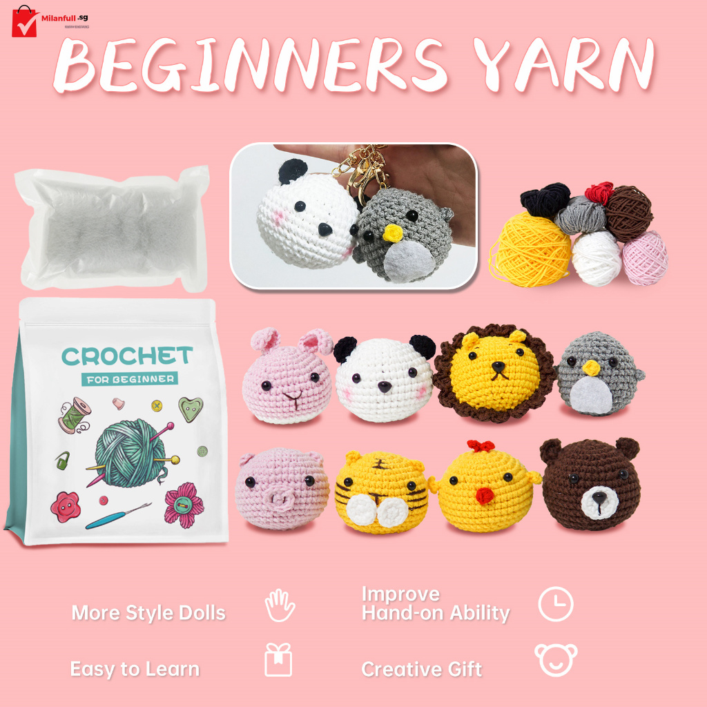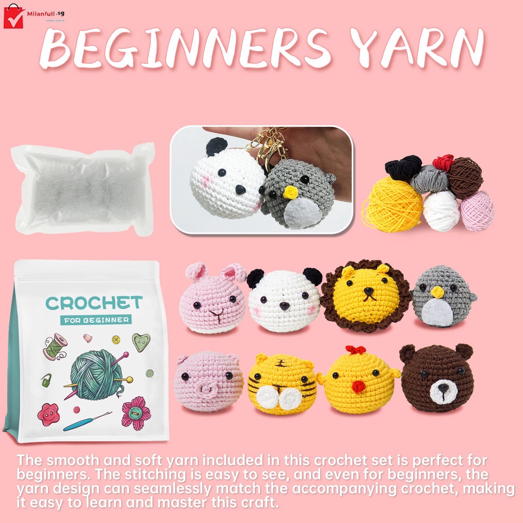 [70Pcs SET] Crochet Kit for Beginners Complete Crochet Knitting Kit Adorable Animal Crochet Starter Pack with Keychain Step-by-Step Video