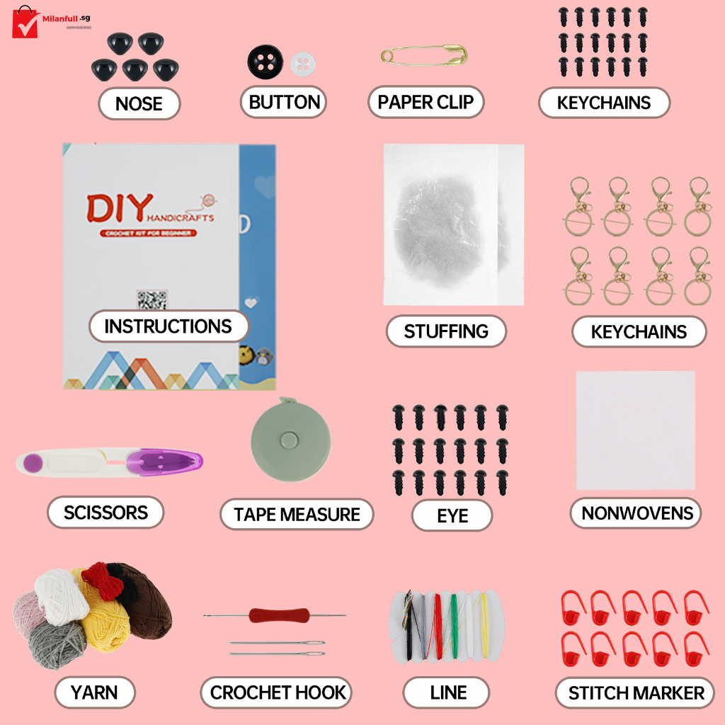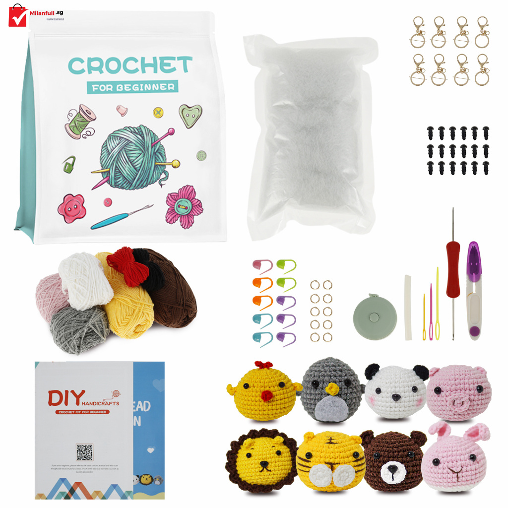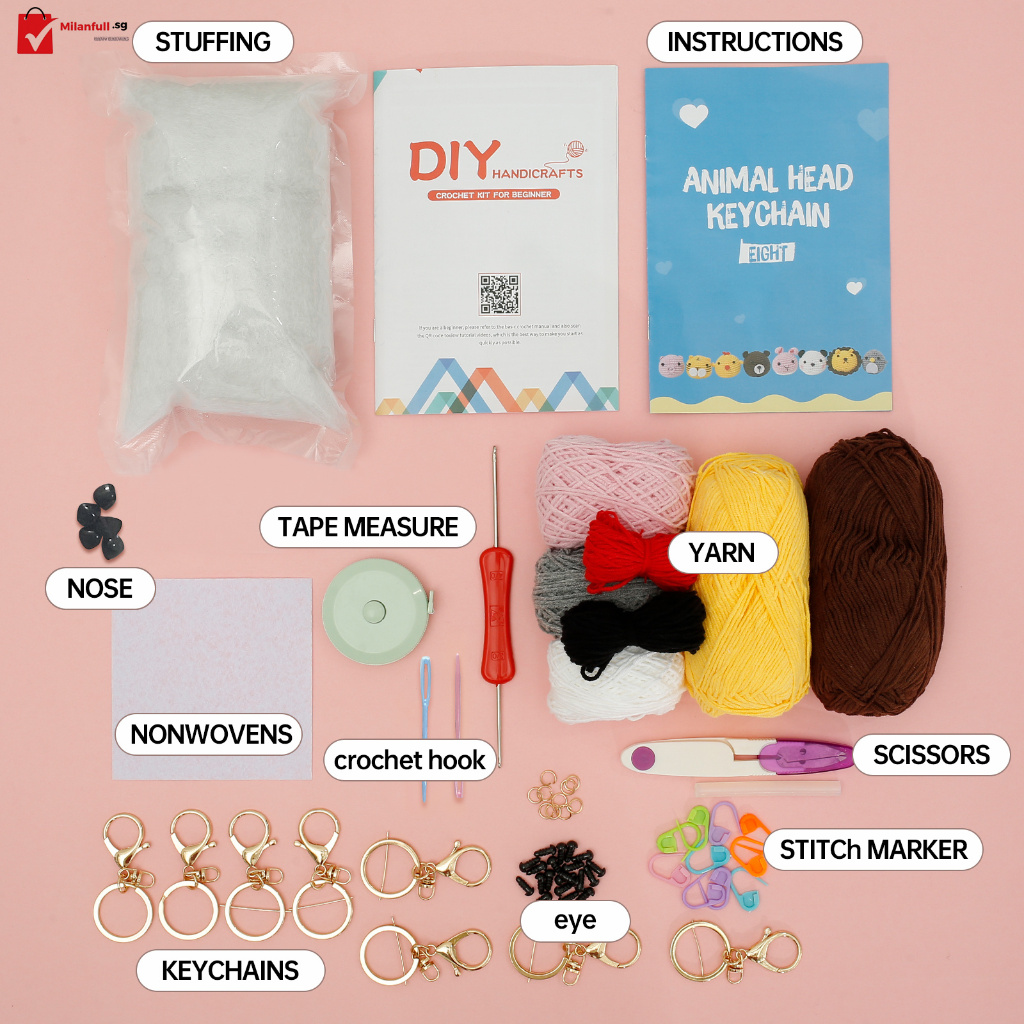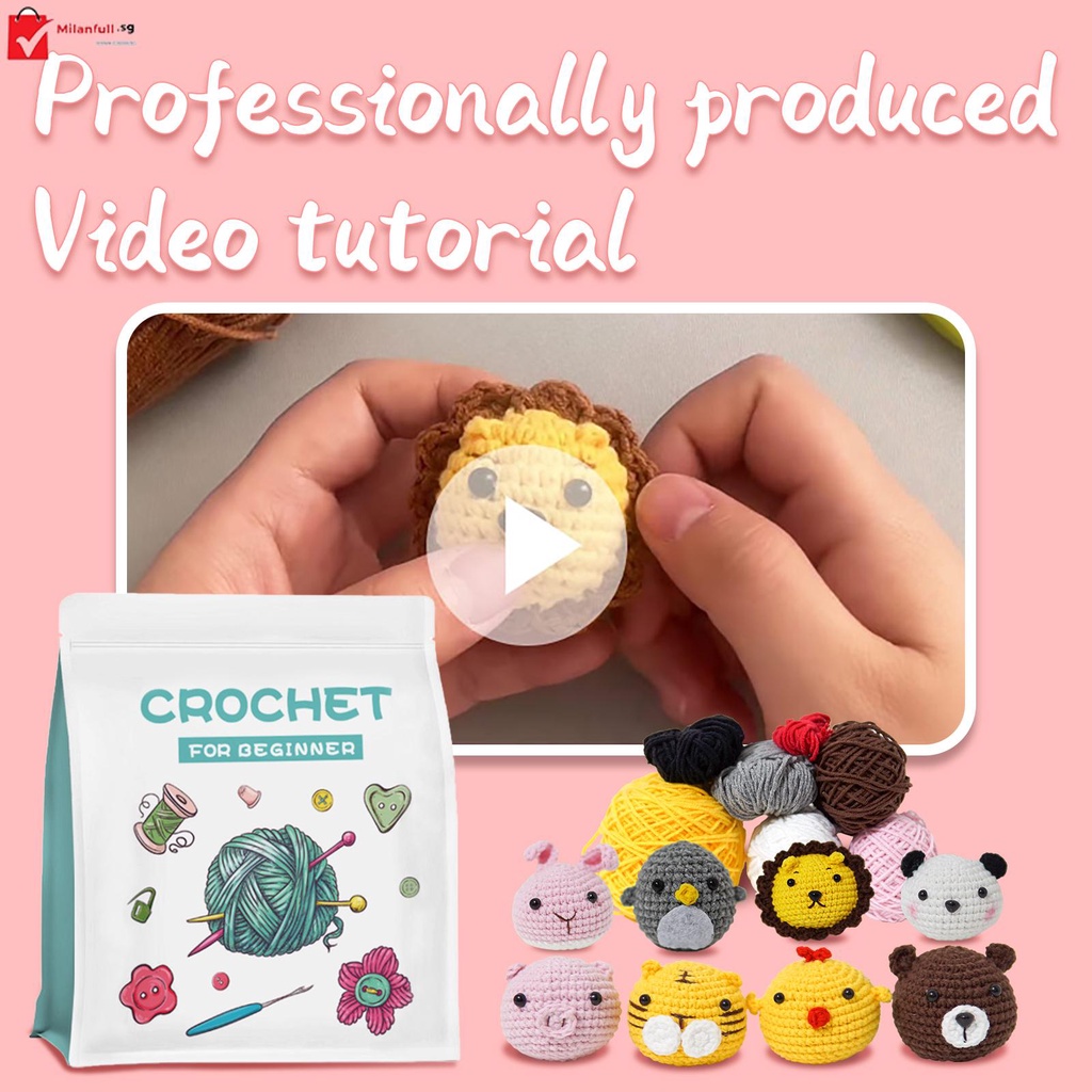 [70Pcs SET] Crochet Kit for Beginners Complete Crochet Knitting Kit Adorable Animal Crochet Starter Pack with Keychain Step-by-Step Video