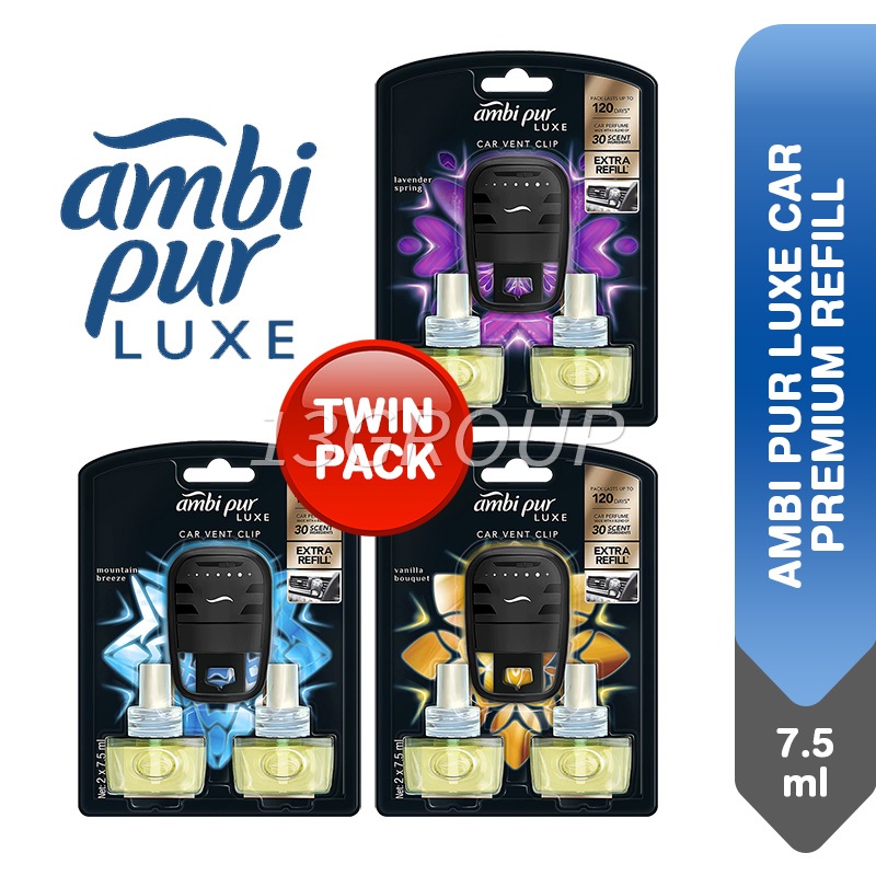 Ambi Pur Luxe Car Premium Air Freshnener Clip Refill, 2x7.5ml [Min]