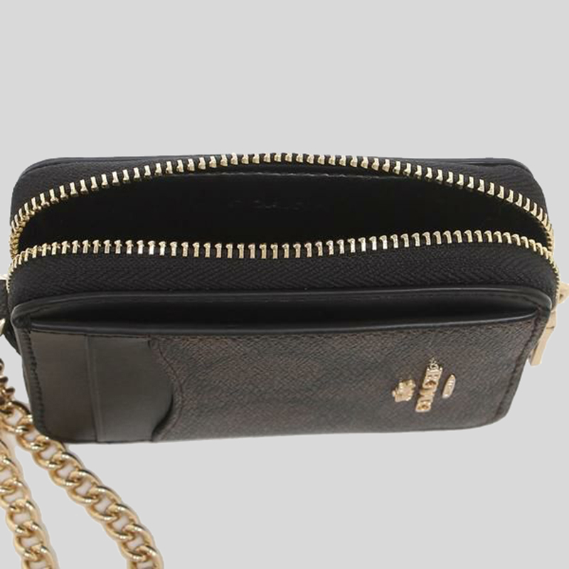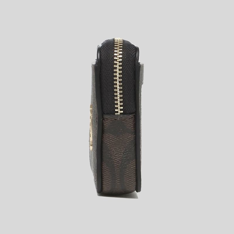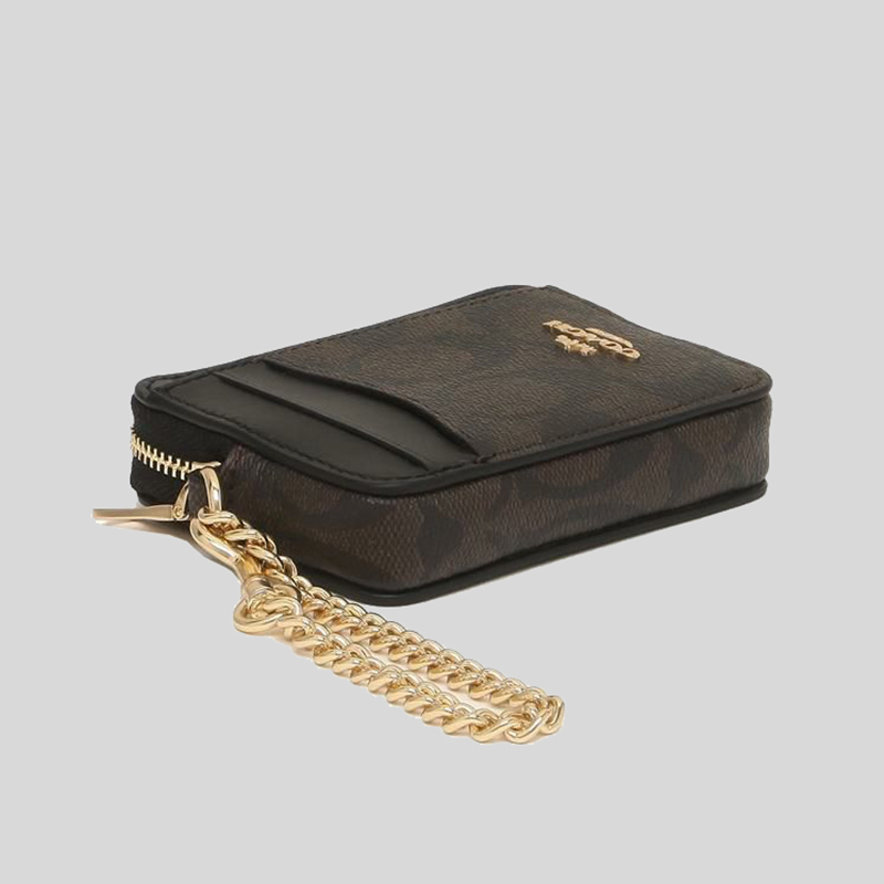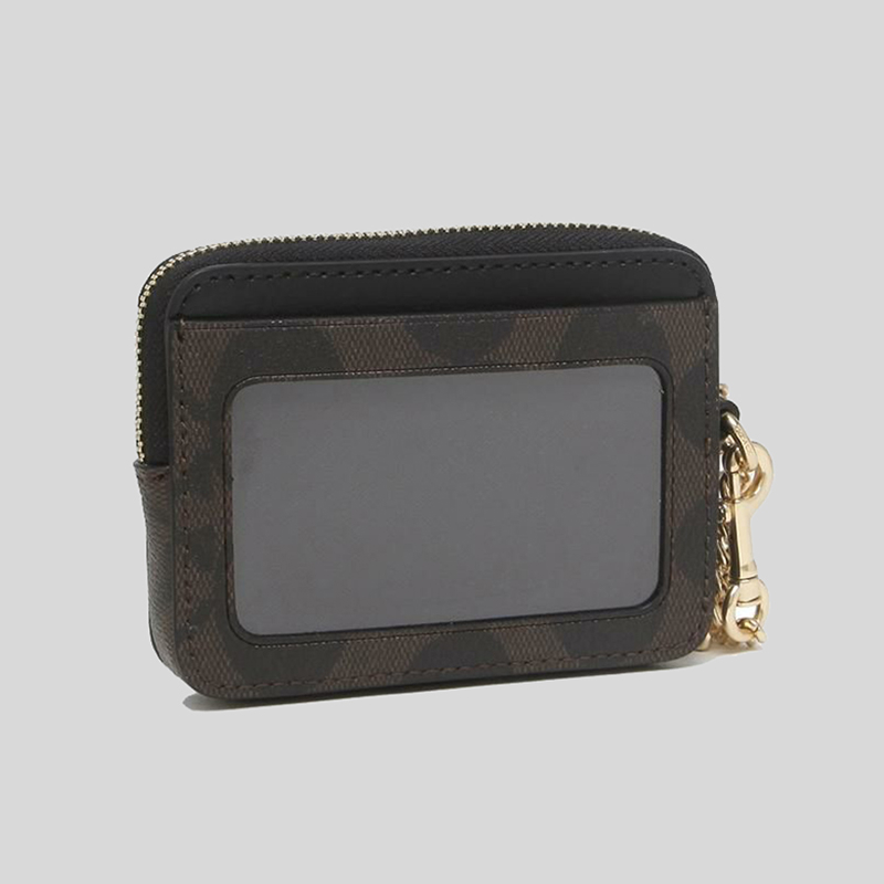 Coach Zip Card Case In Signature Canvas Brown Black C0058