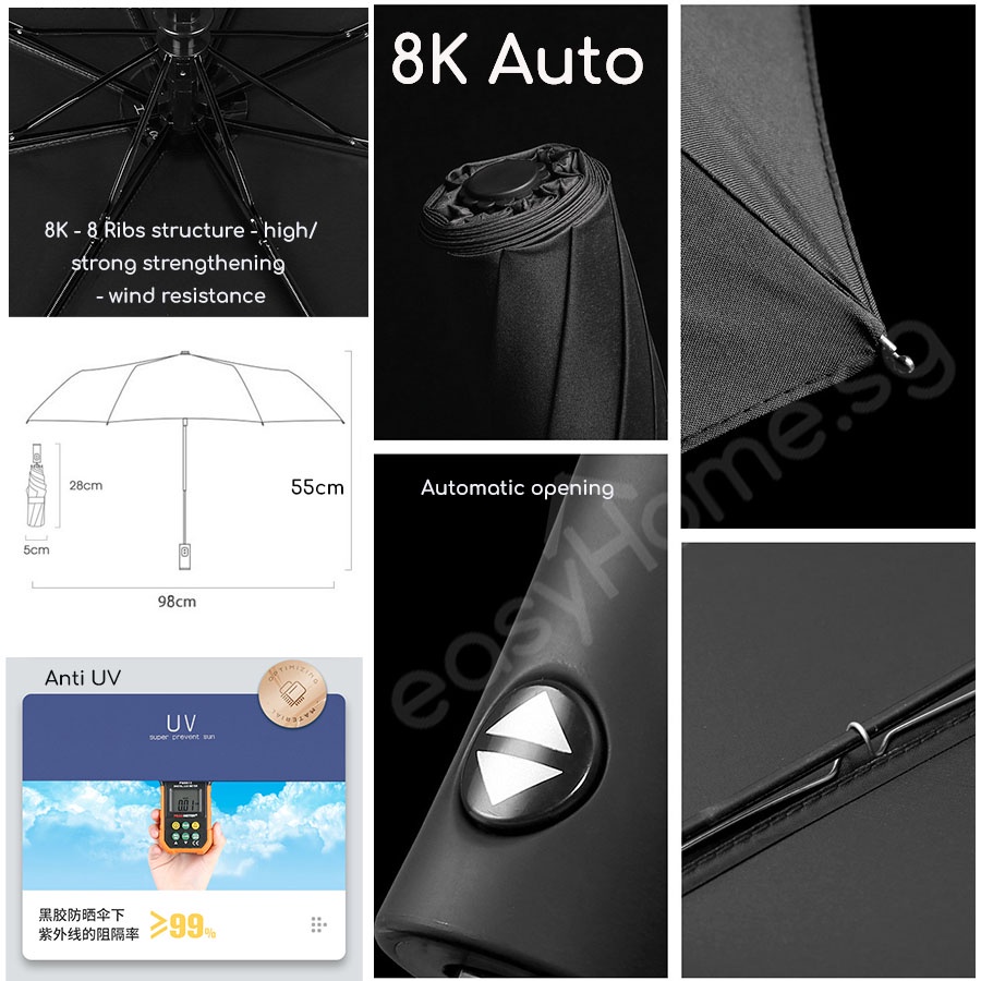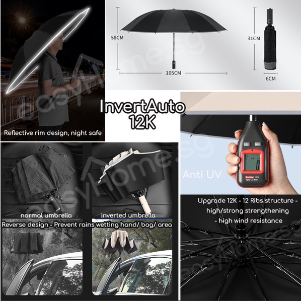Easyhome.sg Umbrella Mini Automatic Inverted Reverse Lightweight Portable Foldable big large umbrella (4 Types)