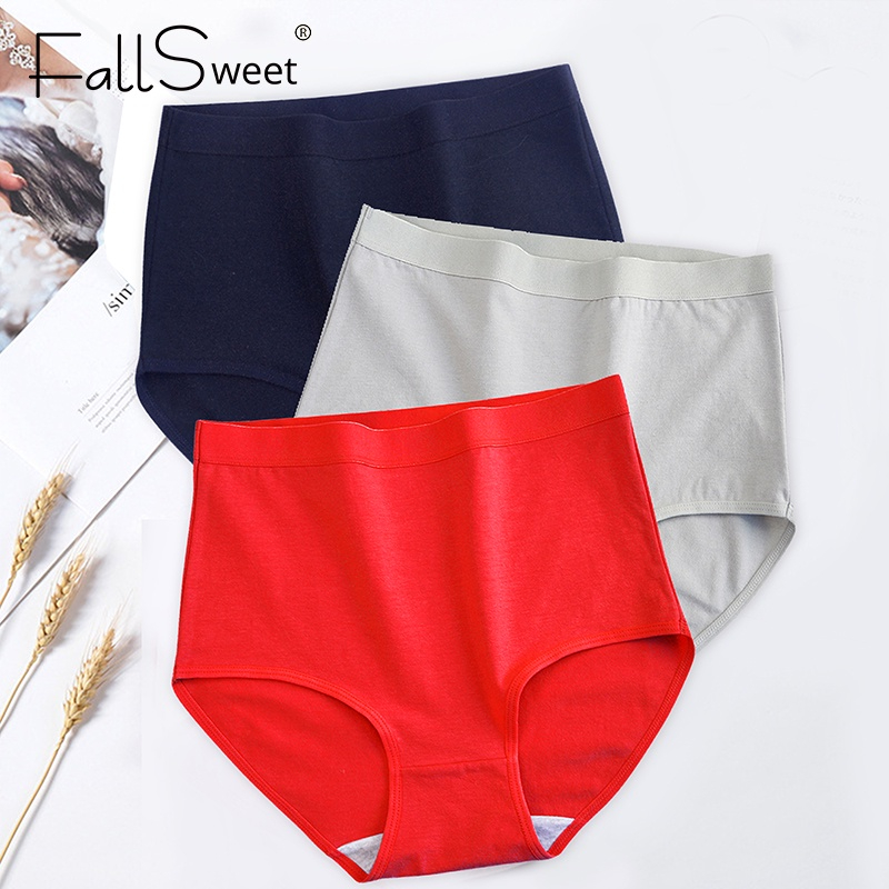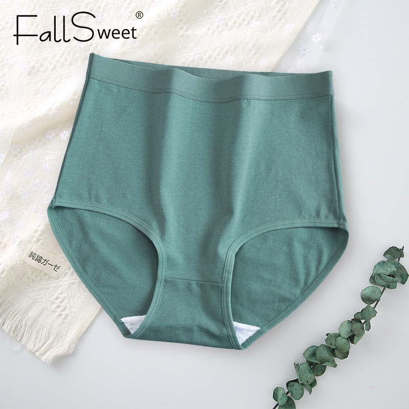 FallSweet Cotton Underwear Women High Waist Panties Comfortable Solid Color Underpants Plus Size M-XXXL
