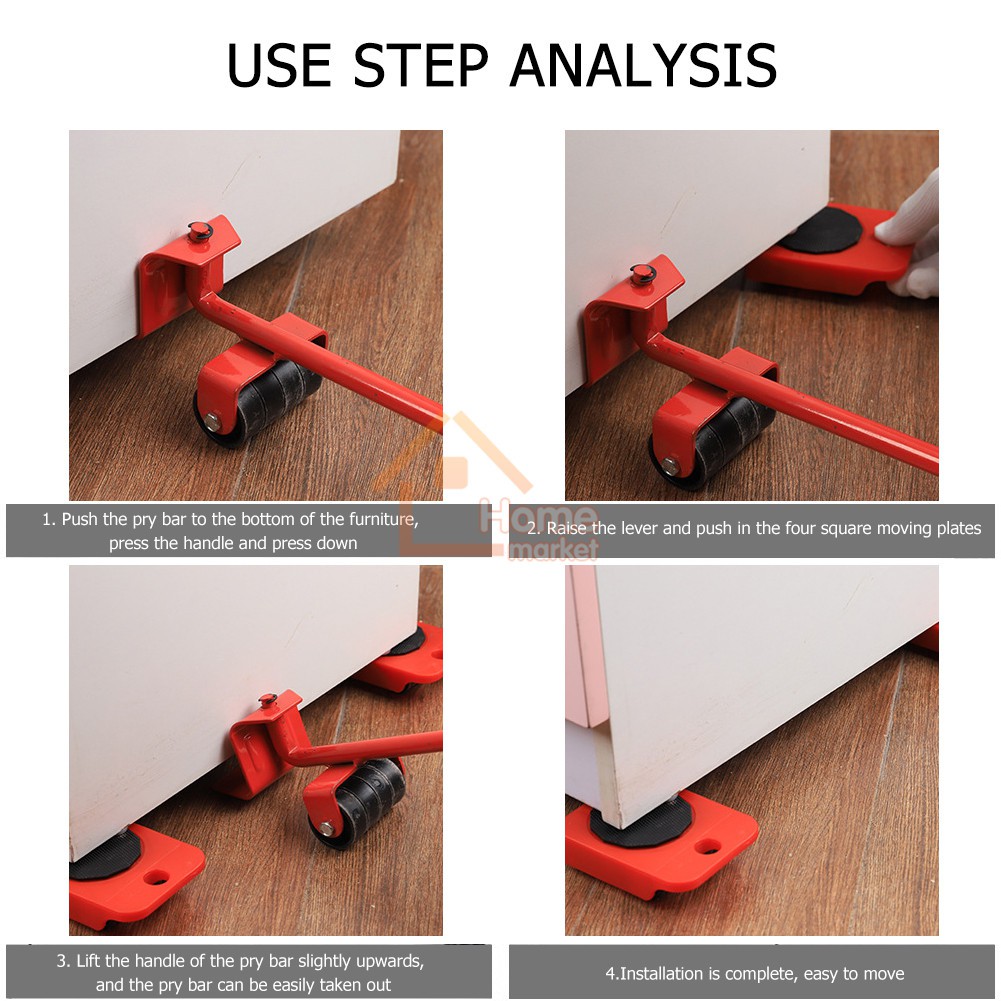 【HM】furniture mover tools With 4 Wheel - 5 set 搬家神器 wheels lifter 360° Free rotation adjustment