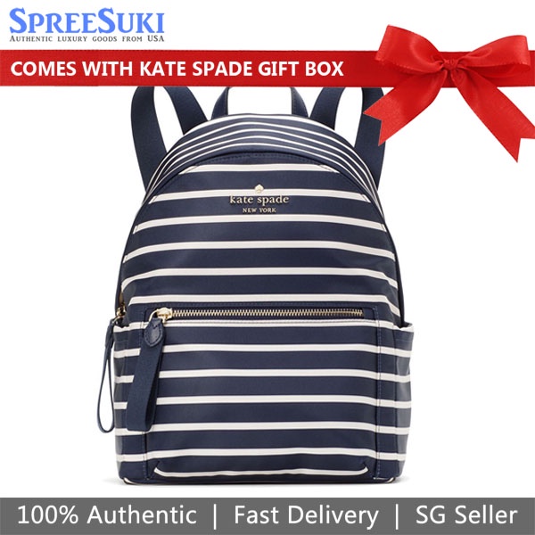 Kate Spade Backpack In Gift Box Medium Backpack Chelsea Small Parisian Nylon Parisian Navy Blue # KB602