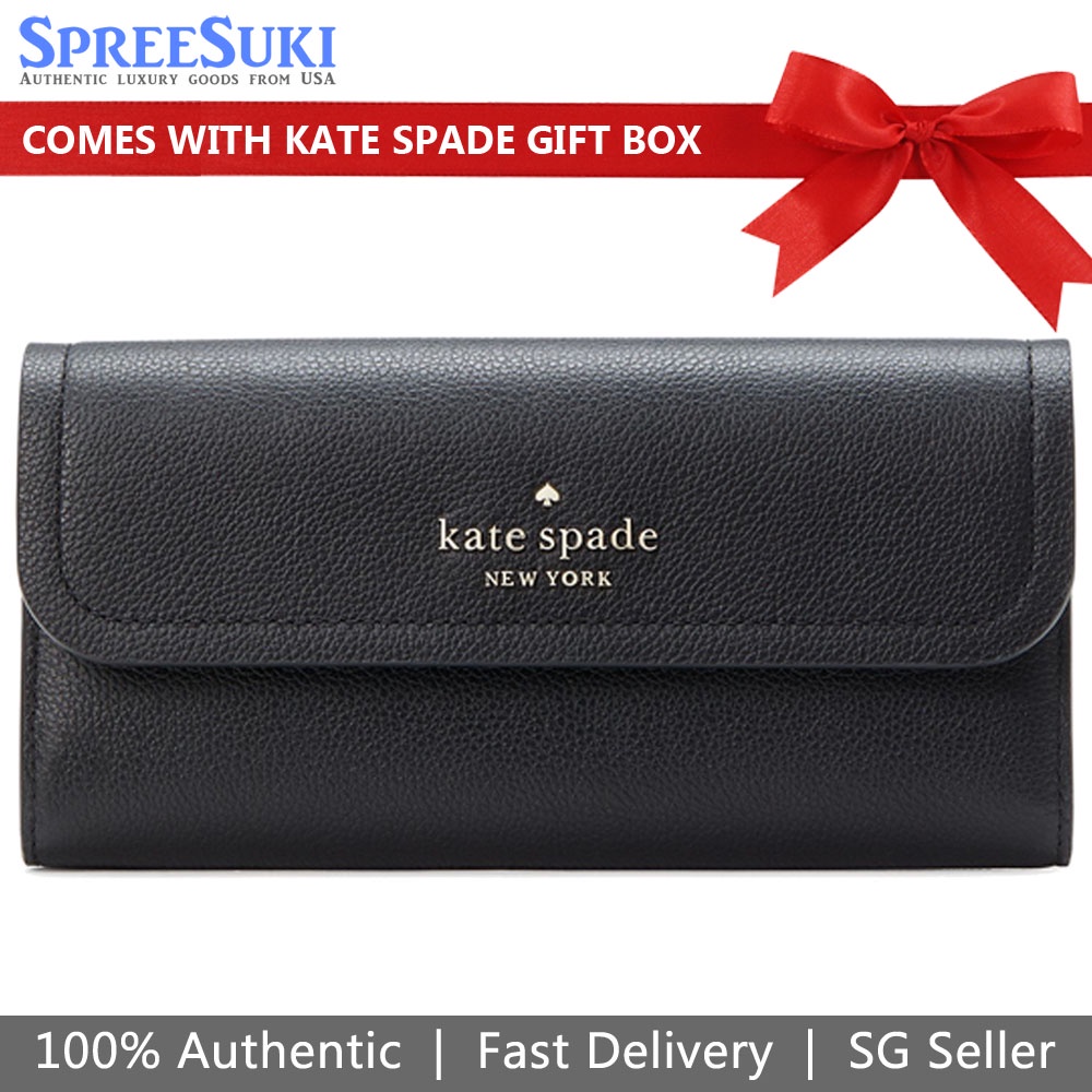 Kate Spade Wallet In Gift Box Long Wallet Rosie Large Flap Wallet Pebbled Leather Black # KB014