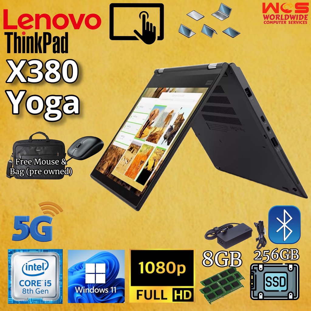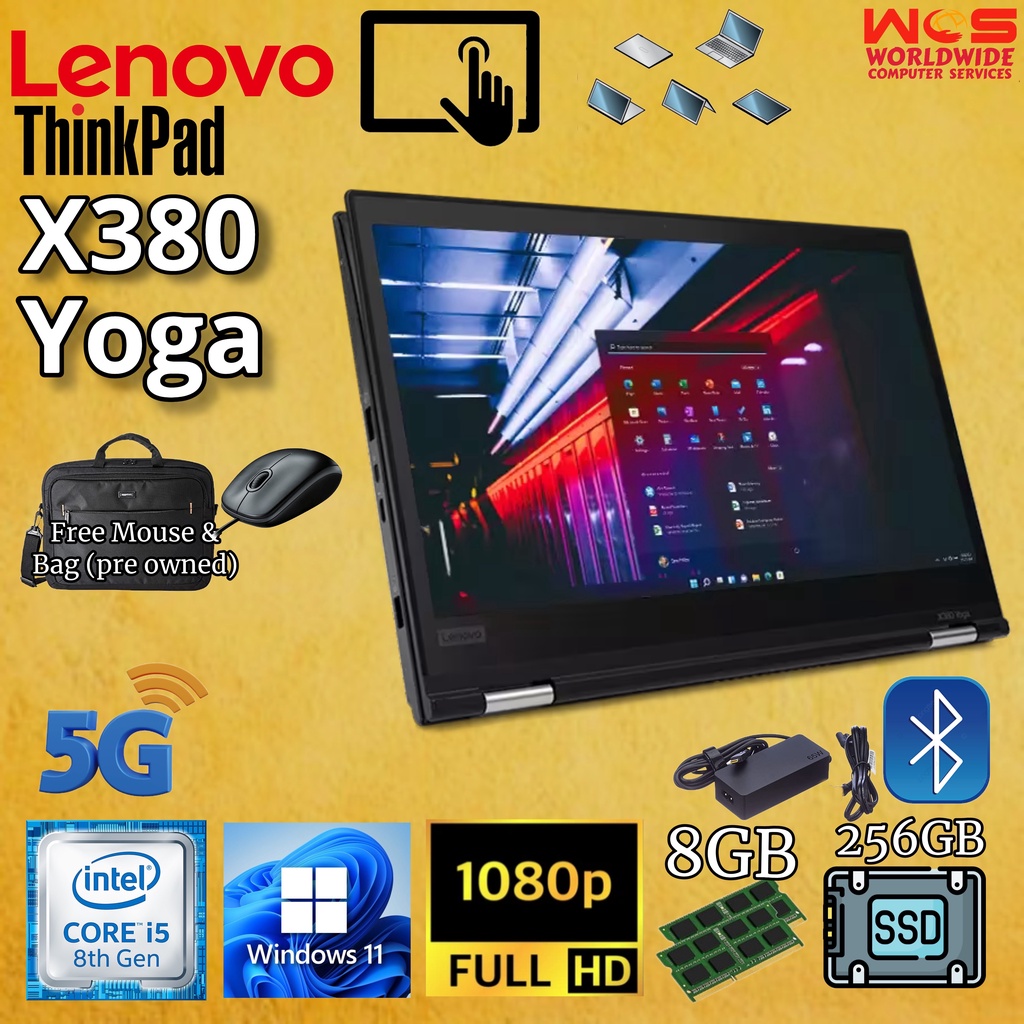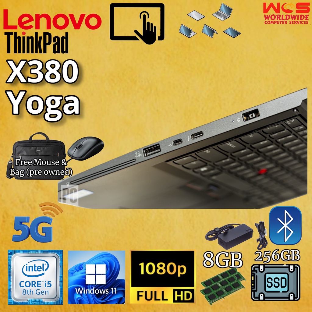 Lenovo ThinkPad X380 Yoga – 13.3″ Touch Screen 2 in 1 Laptop, i5 8th Generation 8Gb Ram 256GB SSD with bag & mouse, Wind