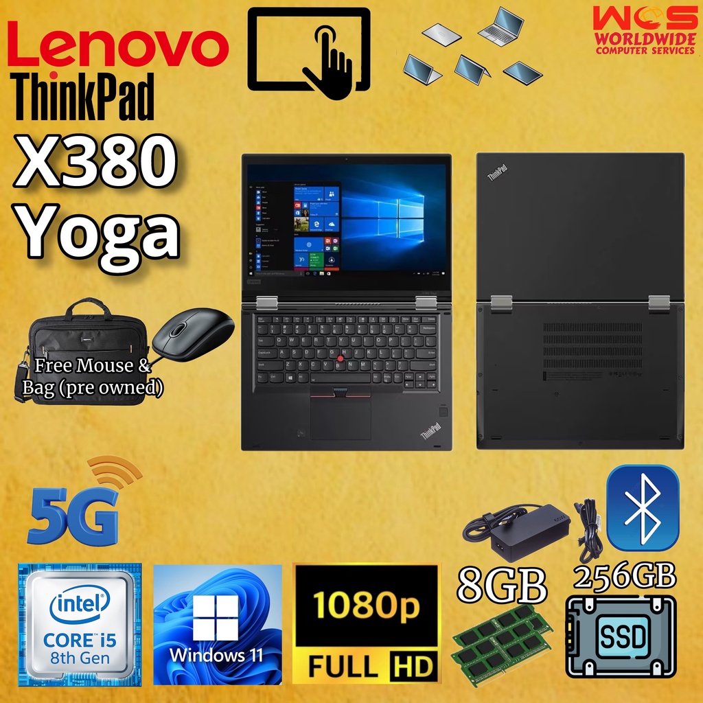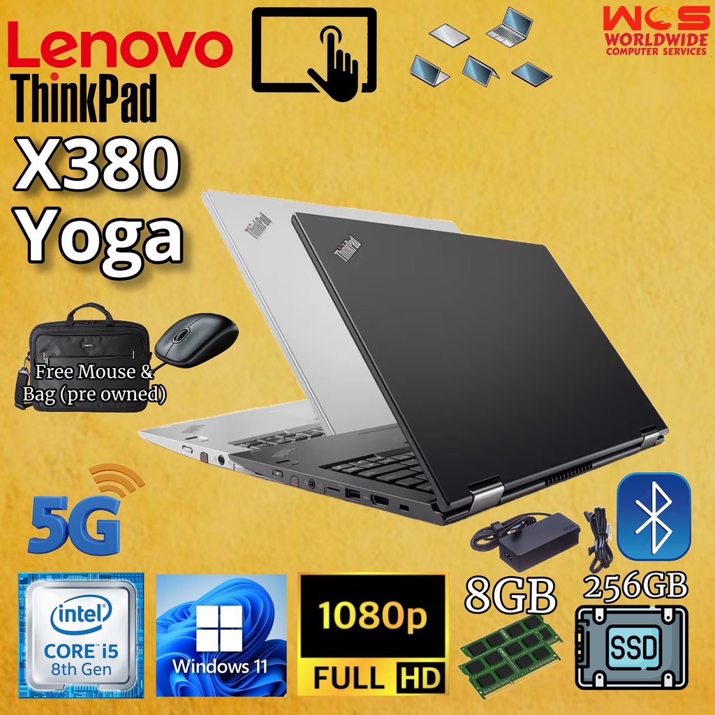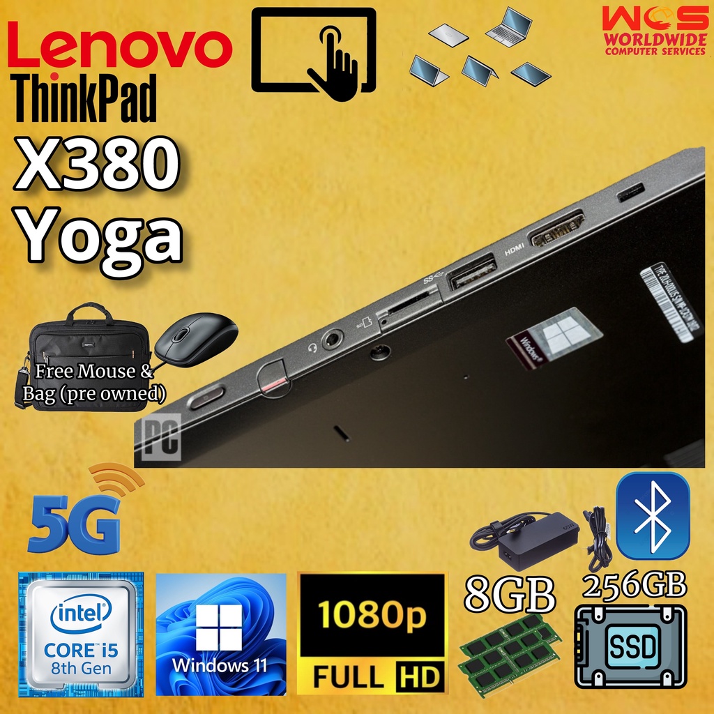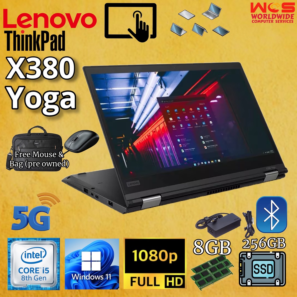 Lenovo ThinkPad X380 Yoga – 13.3″ Touch Screen 2 in 1 Laptop, i5 8th Generation 8Gb Ram 256GB SSD with bag & mouse, Wind