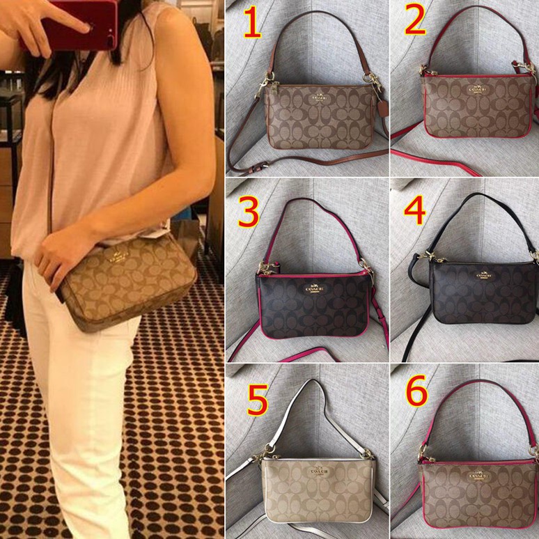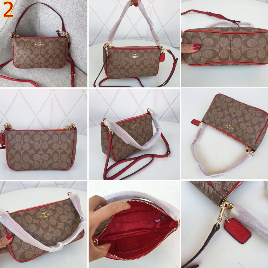 Coach Wristlet In Gift Box Large Wristlet Signature Canvas Coated Double Zip Wallet Brown 1941 Red # C5576
