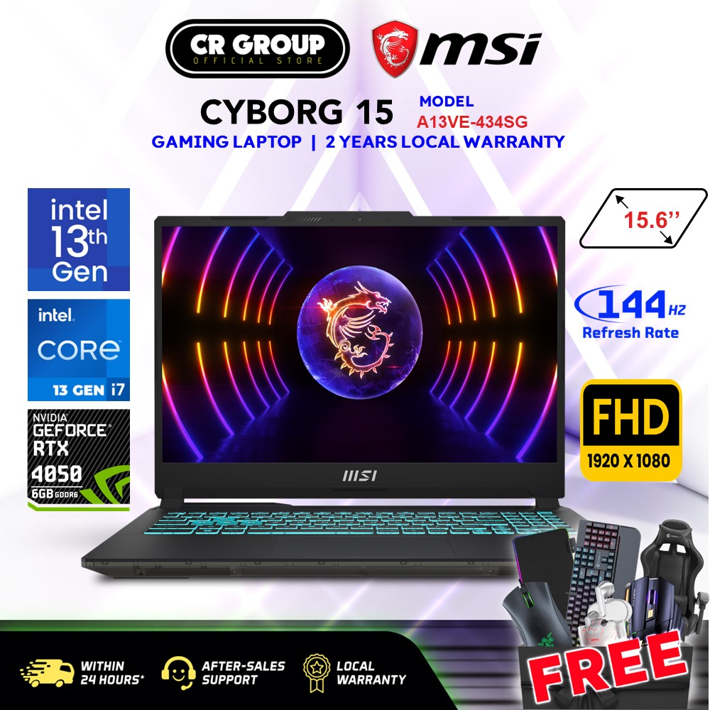 MSI Cyborg 15 A13VE-434SG Gaming Laptop - i7-13620H - RTX4050 6GB - 15.6" FHD 144Hz - 16GB DDR5 - 512GB SSD (2Yrs Agent)