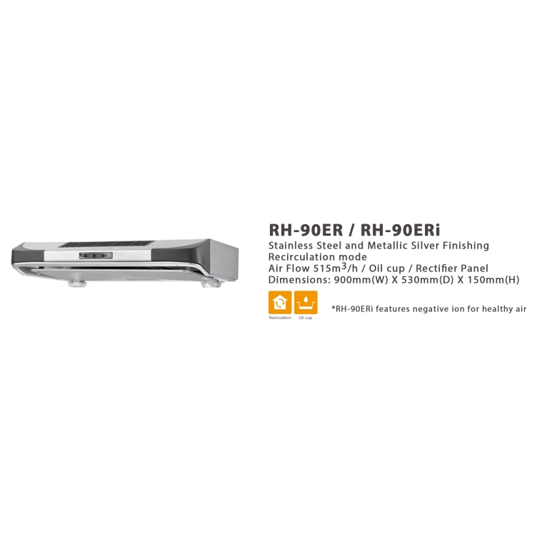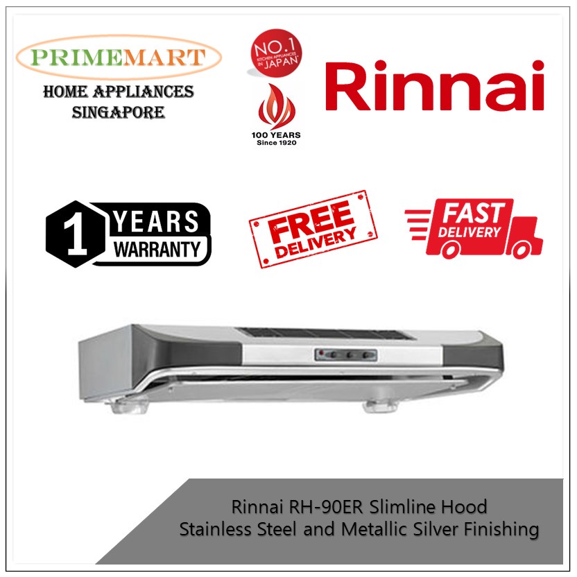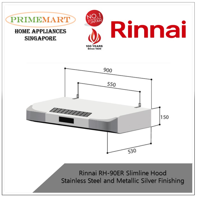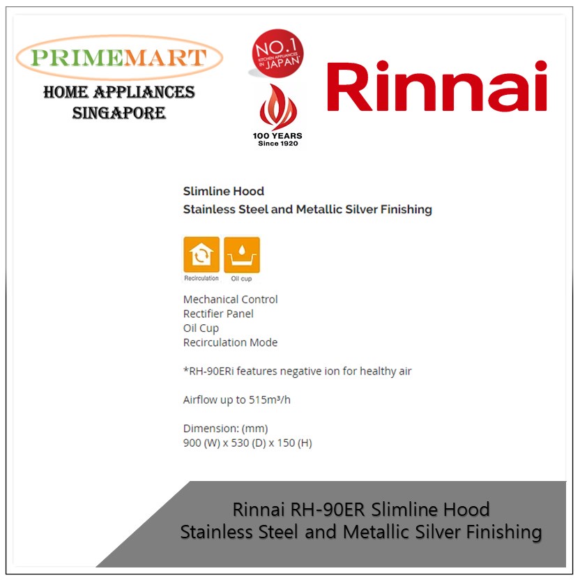 Rinnai RH-90ER/RH-90ERi Slimline Hood Stainless Steel and Metallic Silver Finishing + 1 Year Local Manufacturer Warranty
