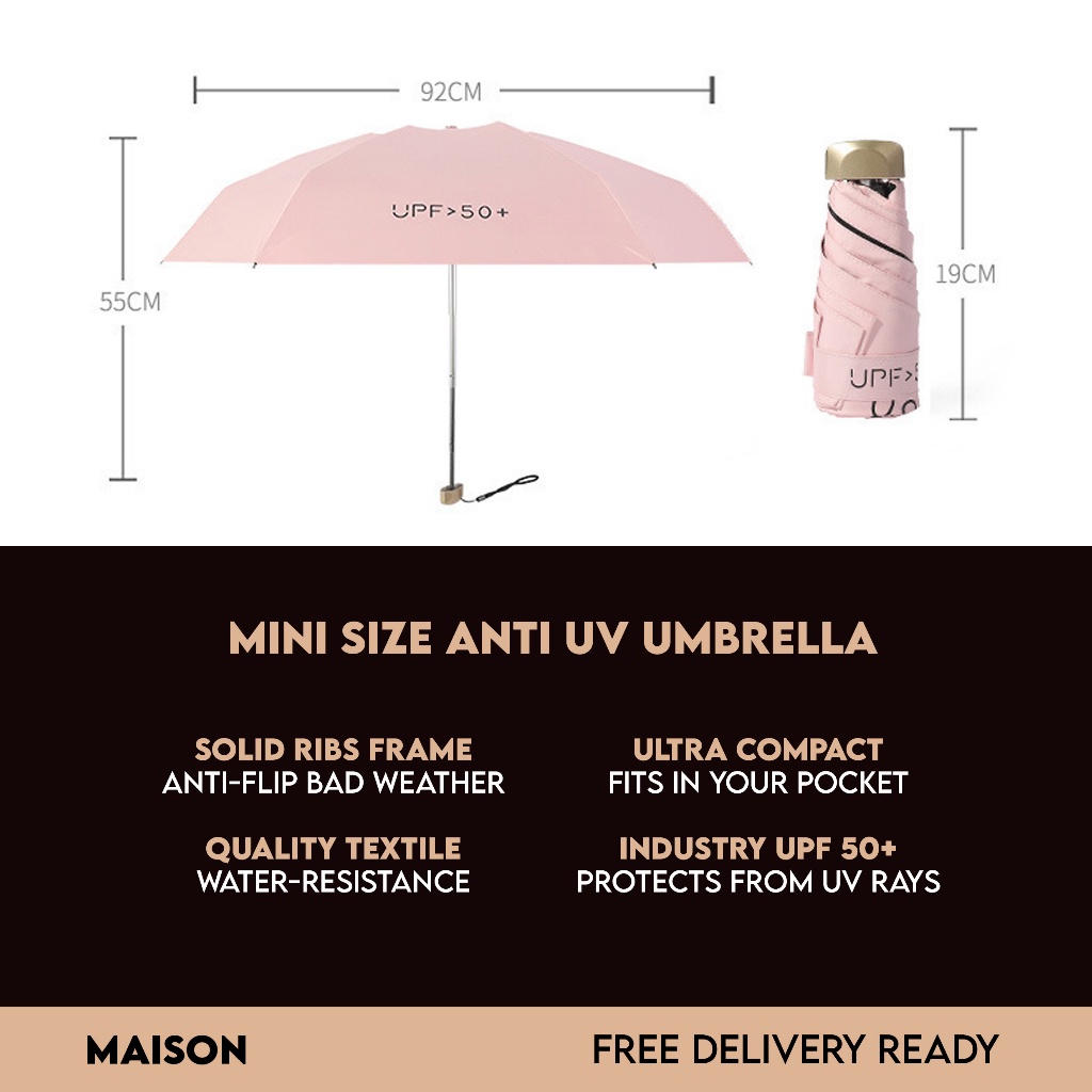 [SG STOCK] Mini Phone Umbrella UV Pocket Small Small Lightweight Size Foldable Compact With UPF 50V Protection