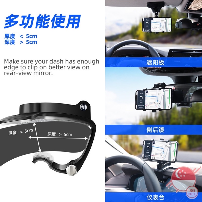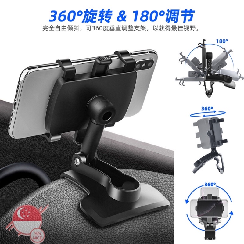 SG STOCK?Car Phone Holder Car Dashboard GPS Navigation Bracket Rearview Mirror Sun Visor Mobile Phone Stand 360º