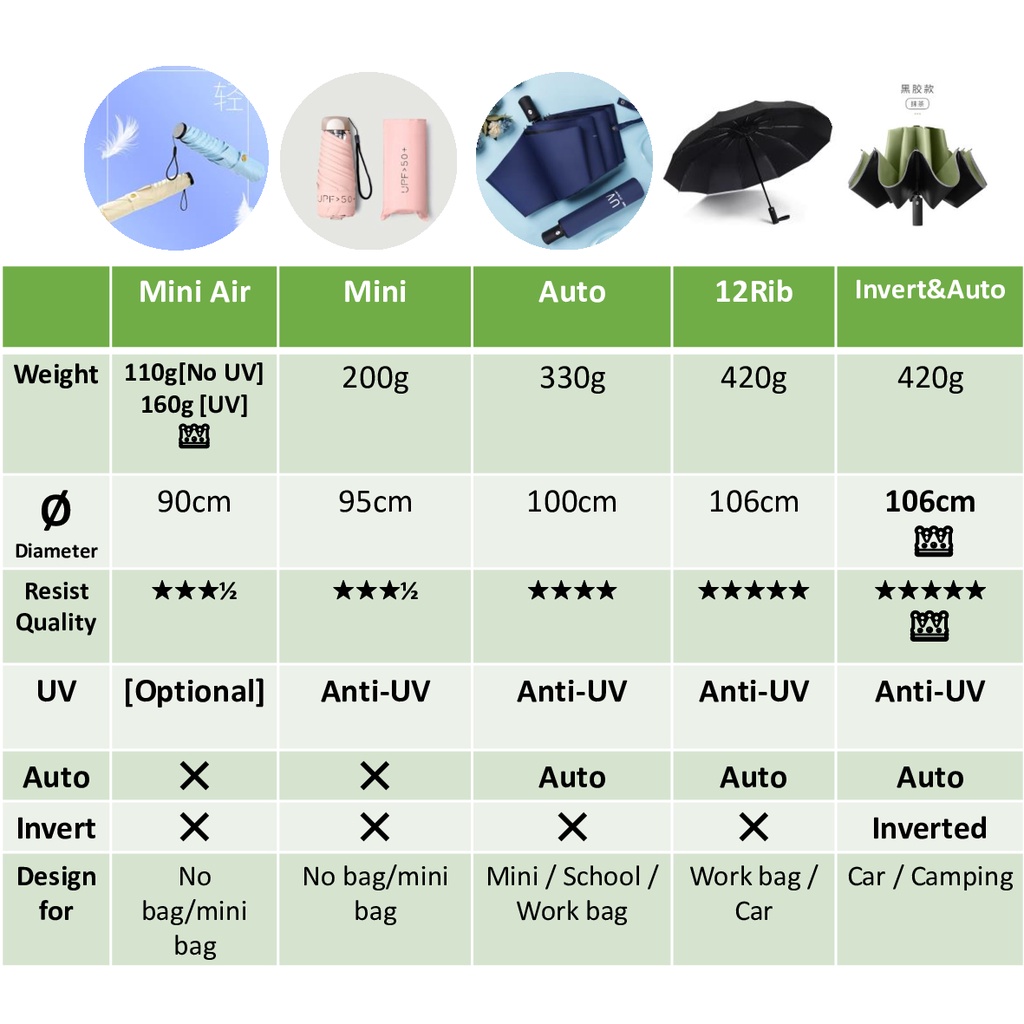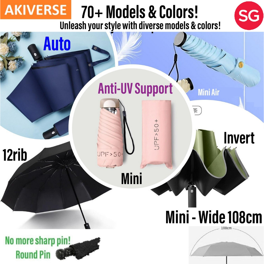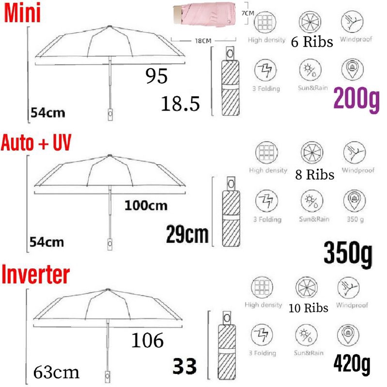 [SG Wholesale] Umbrella Mini Automatic UV Inverted Reverse Lightweight Portable Foldable UPF big large umbrella