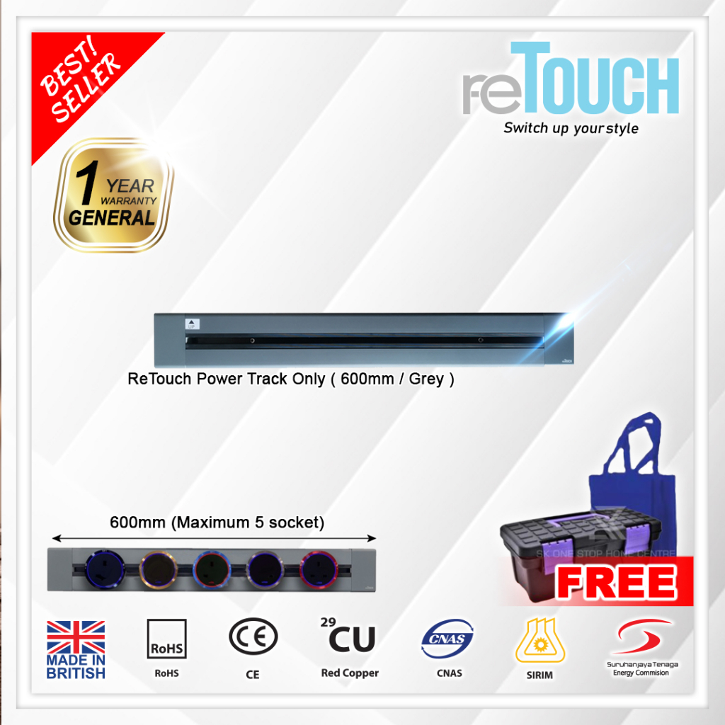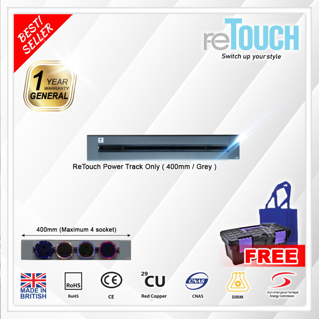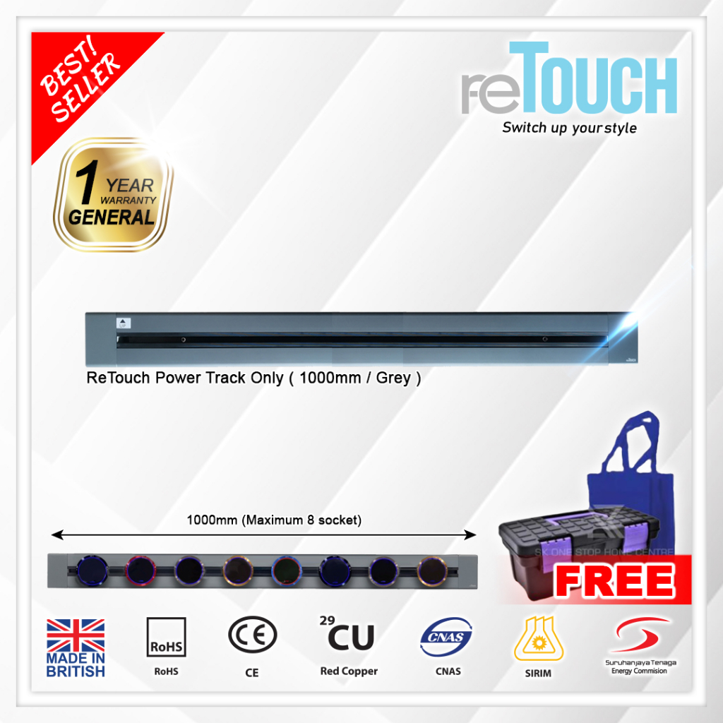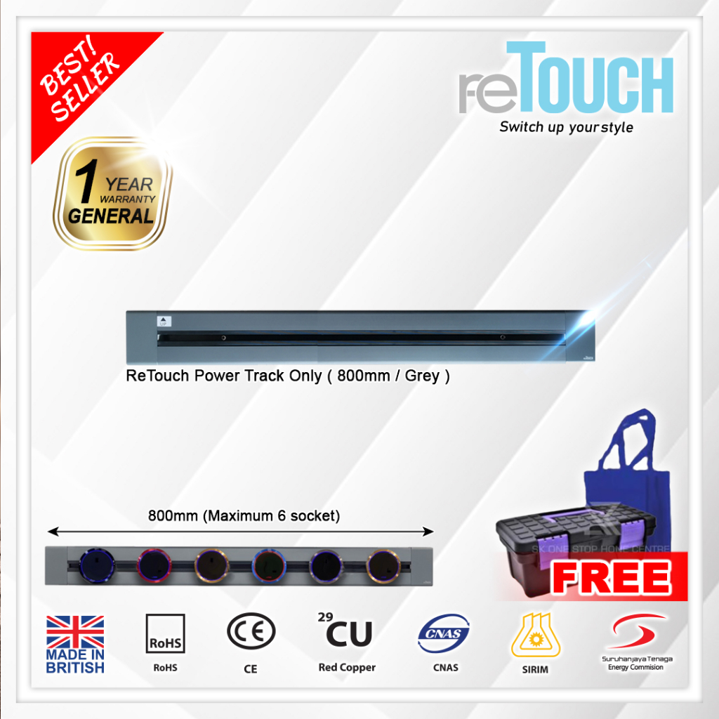(SIRIM) Retouch Power Track (CONCEALED Type) Socket Switch 32A Power Line 600mm / 800mm/ 1000mm (Not Compatible w Eubiq)