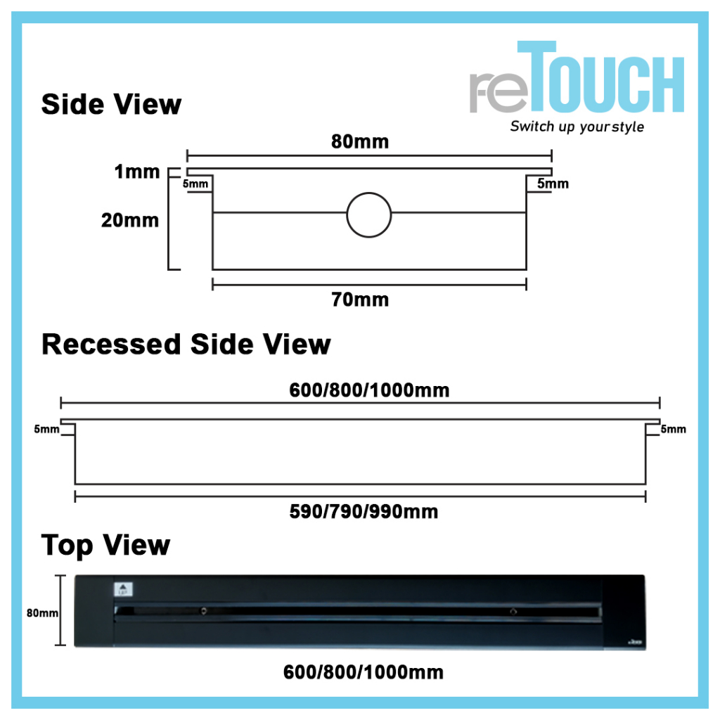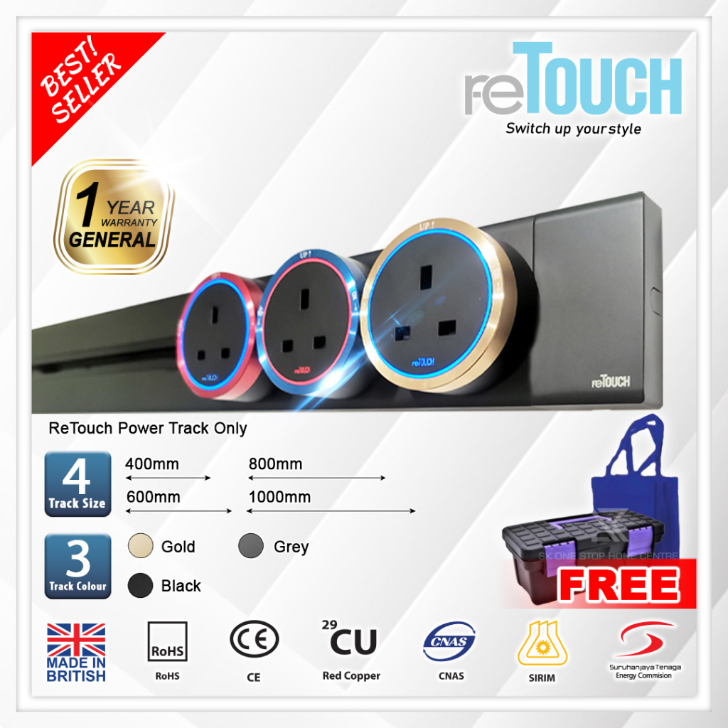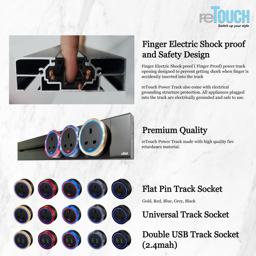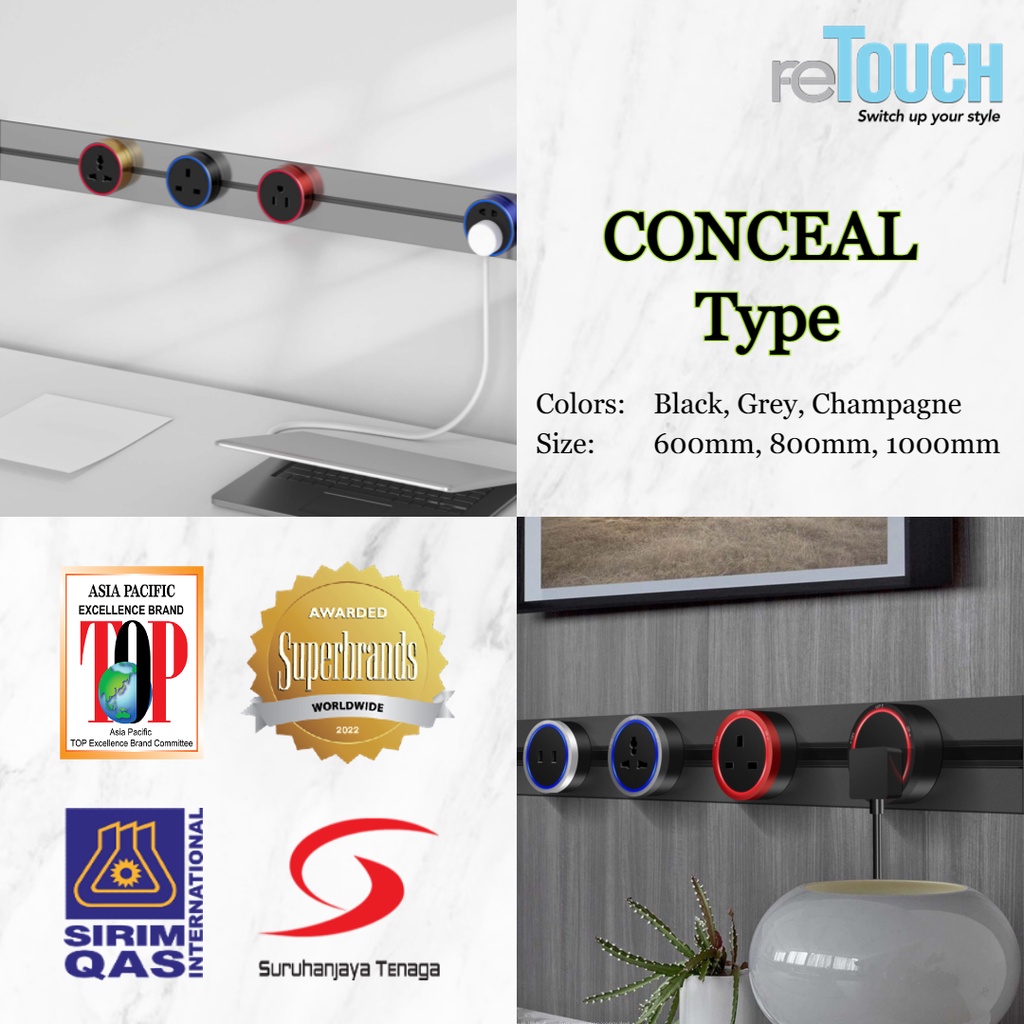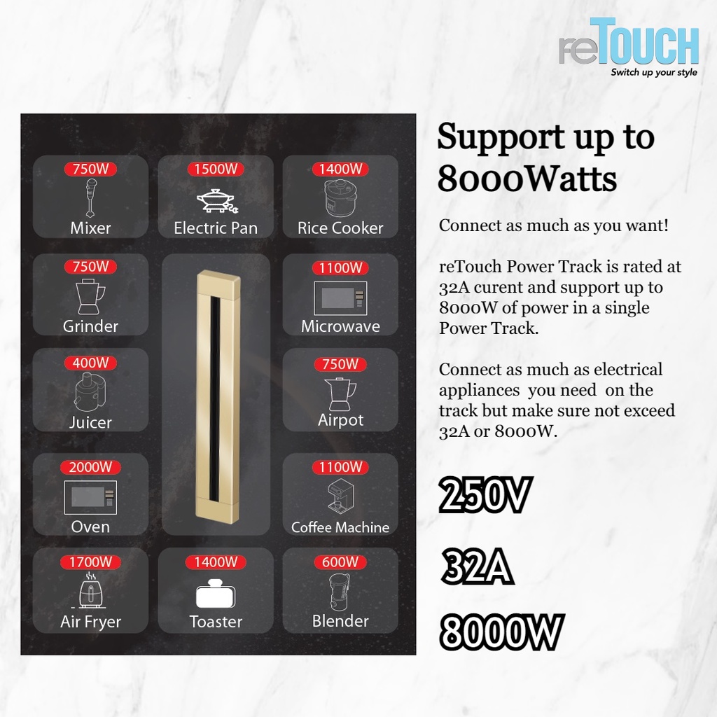 (SIRIM) Retouch Power Track (CONCEALED Type) Socket Switch 32A Power Line 600mm / 800mm/ 1000mm (Not Compatible w Eubiq)