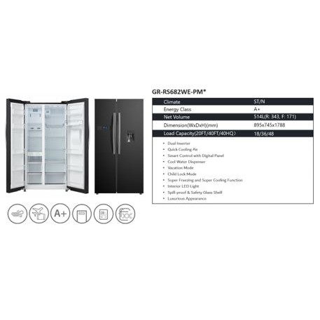 TOSHIBA GR-RS682WE-PMX INVERTER SIDE BY SIDE FRIDGE (NET 514L)